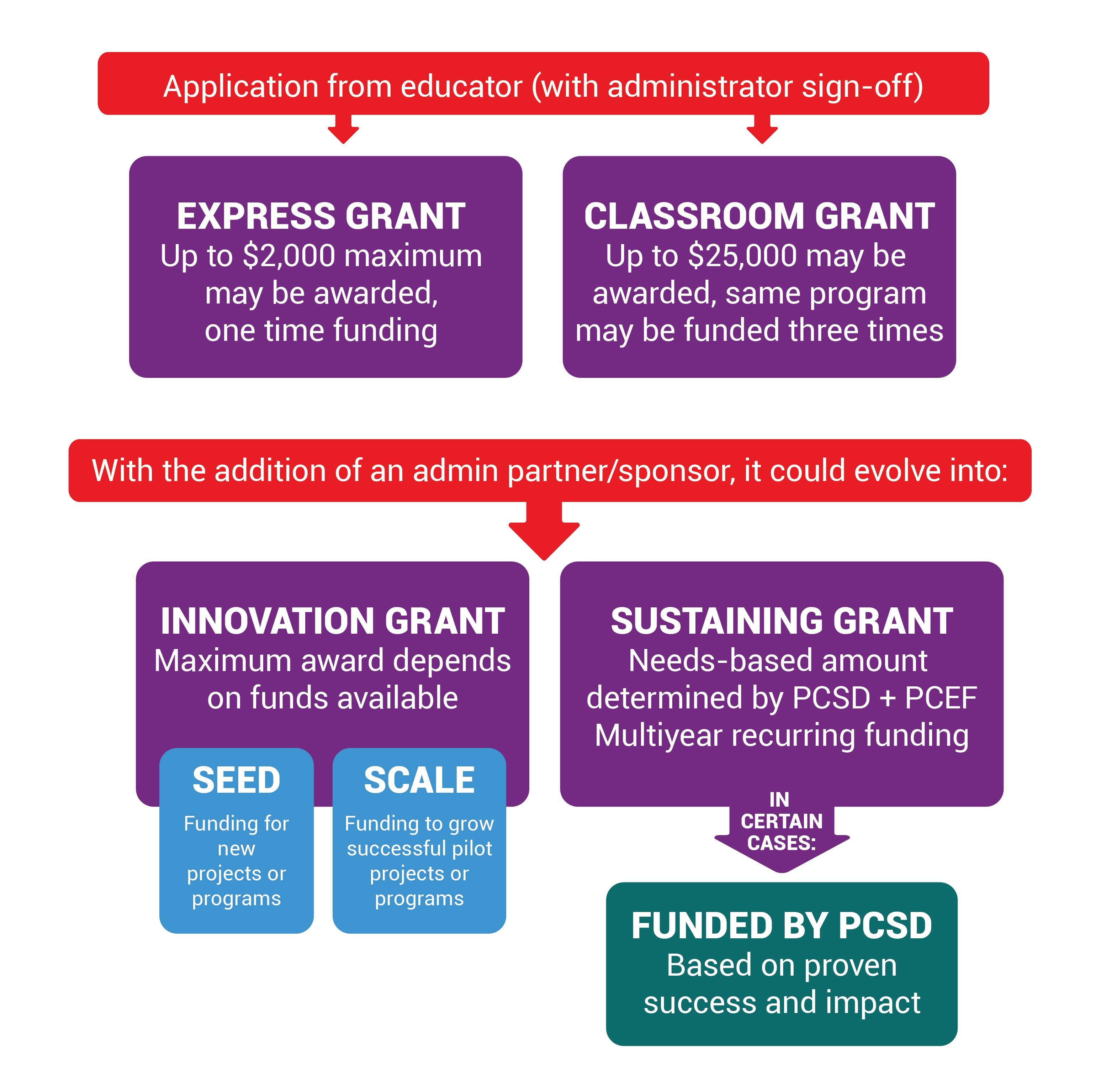 In total, PCEF has four granting mechanisms for PCSD educators. Long-term planing and program development beyond the classroom are collaborative efforts that involve the entire district's leadership, educators, and community stakeholders.