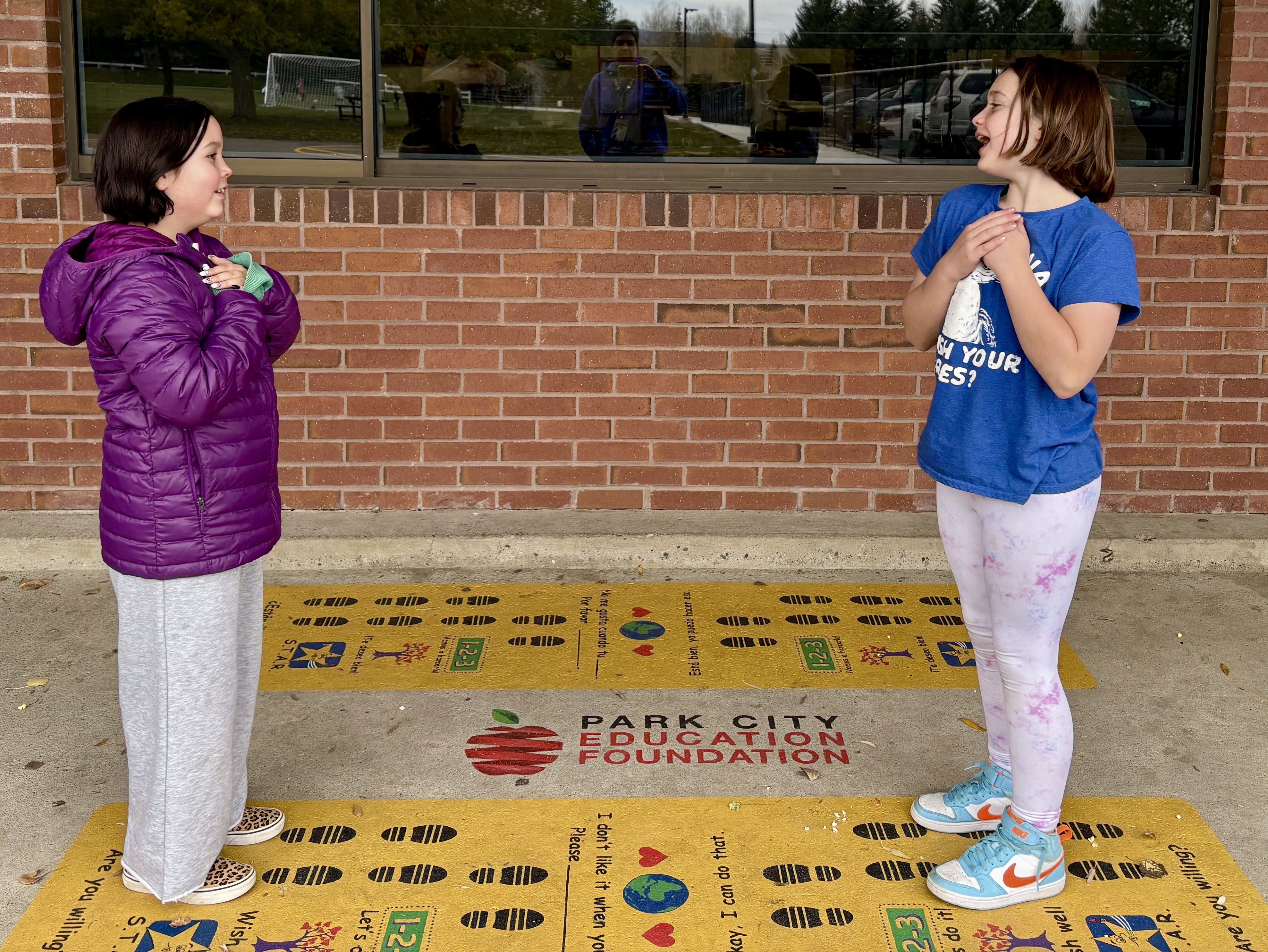 Financiada mediante una Subvención Exprés de la Fundación Educativa de Park City (PCEF, por sus siglas en inglés), la artista local Emily Miquelon pintó las Máquinas del Tiempo. Creó dos zonas en el patio, cada una con versiones en inglés y en español, para garantizar la accesibilidad de todos los estudiantes.